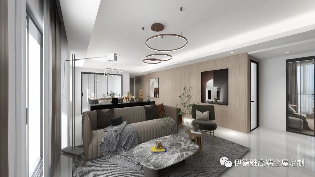 此套定制效果和風格自然柔和,大面積使用原木材質,深挖其原始特質,并運用現代設計手法,與各類材質搭配,融匯出一個舒適的、純粹的、治愈的、松弛的家。