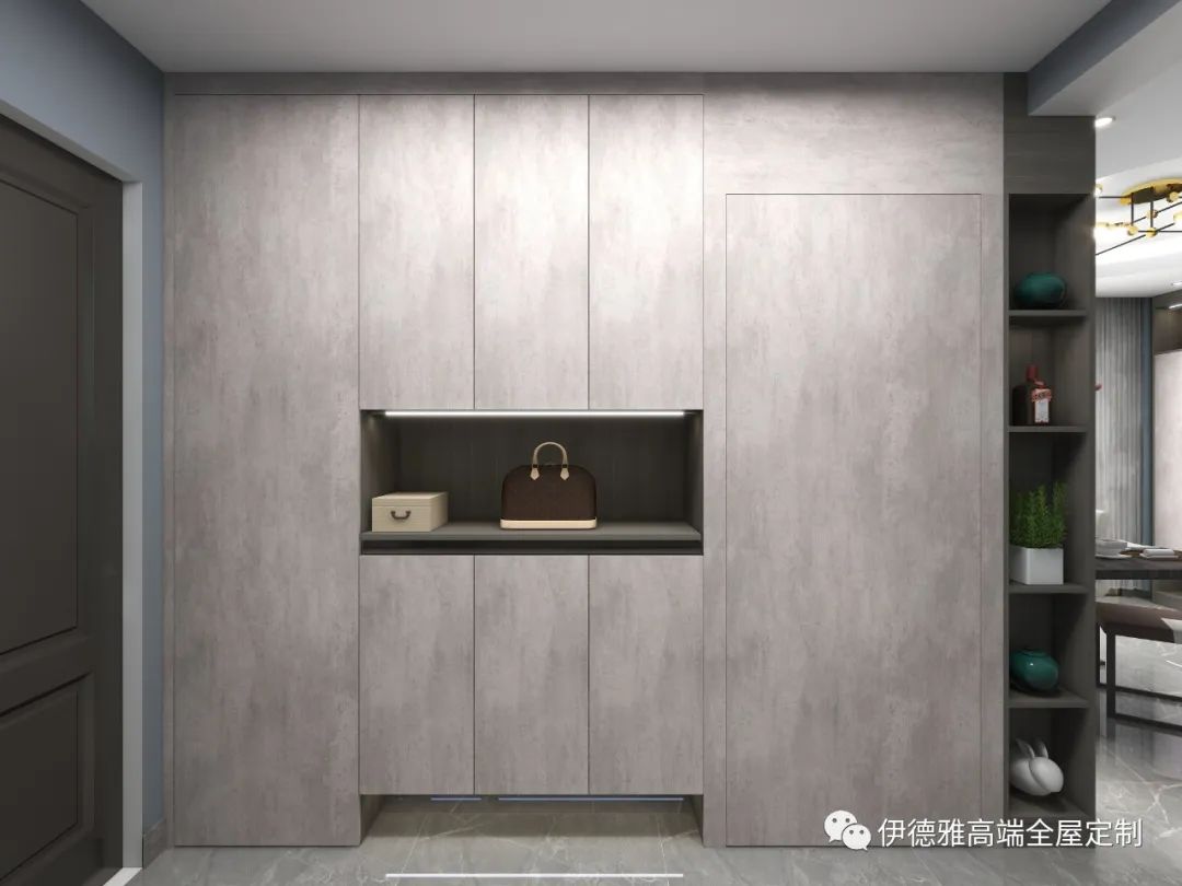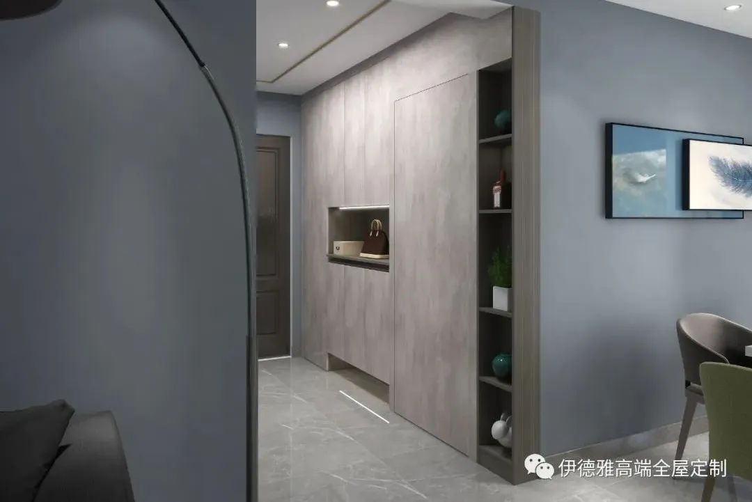 居家空間增添靈氣之外卻又不失穩重,米色嵌入式定制鞋柜做搭配,柔化空間氣氛,同時帶來一種安穩舒心的居家感。每個家都有著自己獨特的氣質,無論從空間屬性還是點點綠意,以及被精心布置的飾物,設計上的簡潔和美學上的品位,都讓這個空間能感受到家的溫度。