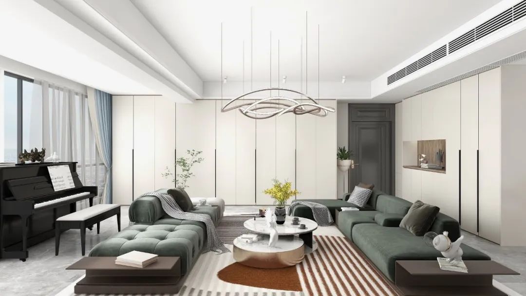 深綠色沙發(fā)與藝術感地毯紋理的搭配,大氣沉穩(wěn)中多了一抹自然的氣息,營造出一種自由、優(yōu)雅的精神空間,簡約而不簡單。純色不僅僅讓家看上去清爽干凈,更能給人一種十足的安全感,打造出一種置身高級秀場的感覺,純凈、優(yōu)雅,讓家居生活變得更加溫馨舒適。