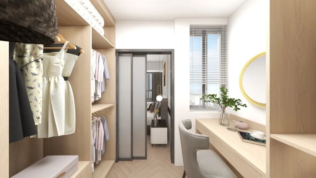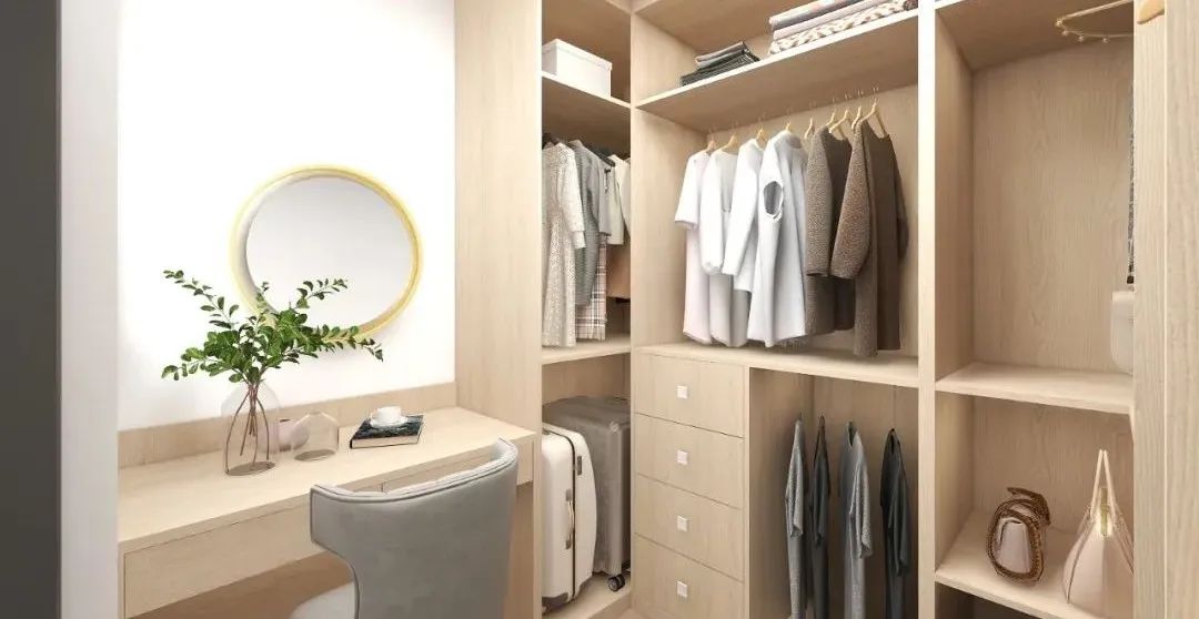 有效的設計令空間更為靈活,賦予生活更多的樂趣,足夠的抽屜、置物架、懸掛架、柜子給收藏居住者每一件衣物和配飾,令每一件物品都享受到滿滿的儀式感,回饋于居住者精致的生活態(tài)度。