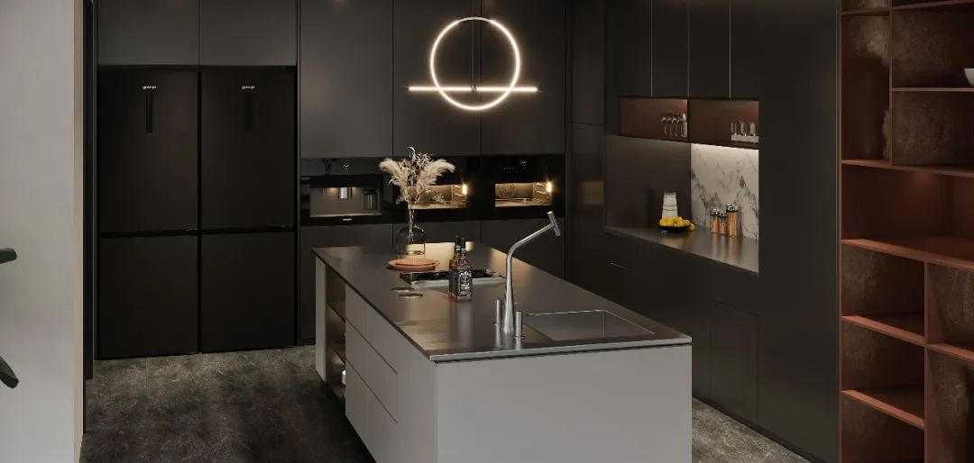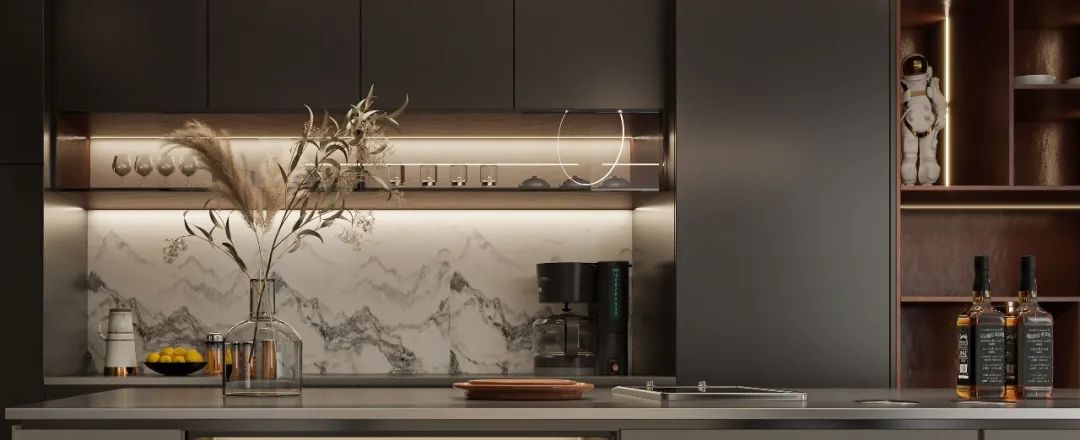 常見的臺面為石英石,因為這種材質硬度高,耐熱,耐酸堿油污,顏值高還易清理,在櫥柜臺面材料市場上非常受歡迎。當然,你也可以根據家裝風格選擇不銹鋼、飾面板、巖板等材質。