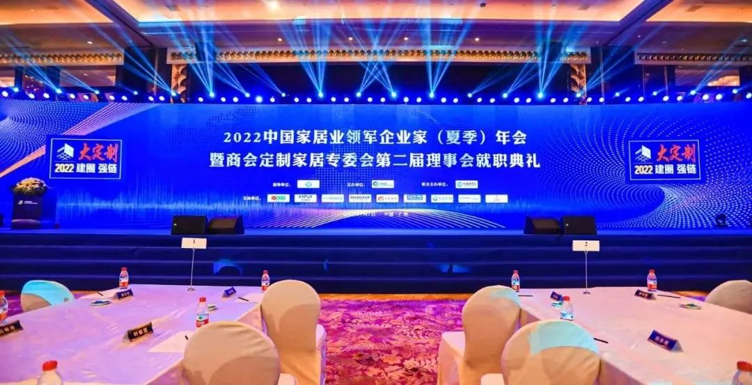 2022年7月7日,由全國工商聯家具裝飾業商會主辦,中國建博會聯合主辦的2022 中國家居業領軍企業家(夏季)年會暨商會定制家居專委會第二屆理事會就職典禮于廣州香格里拉大酒店隆重召開。